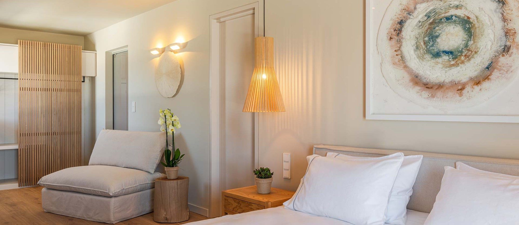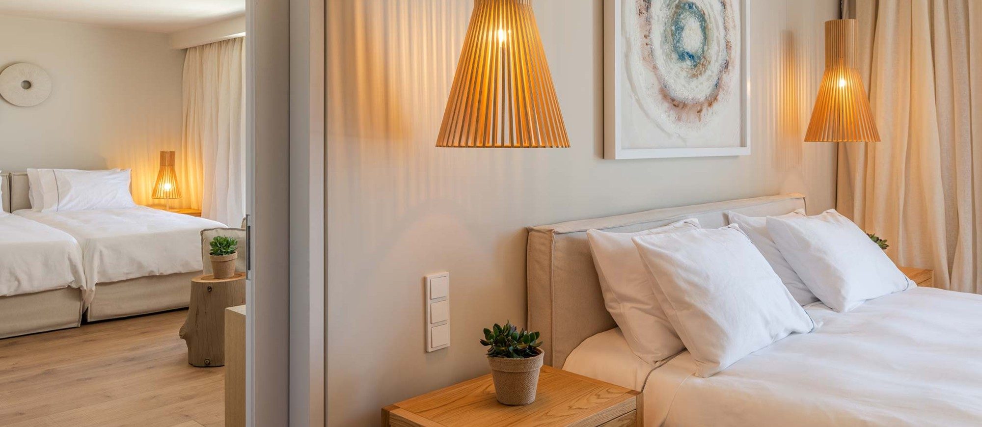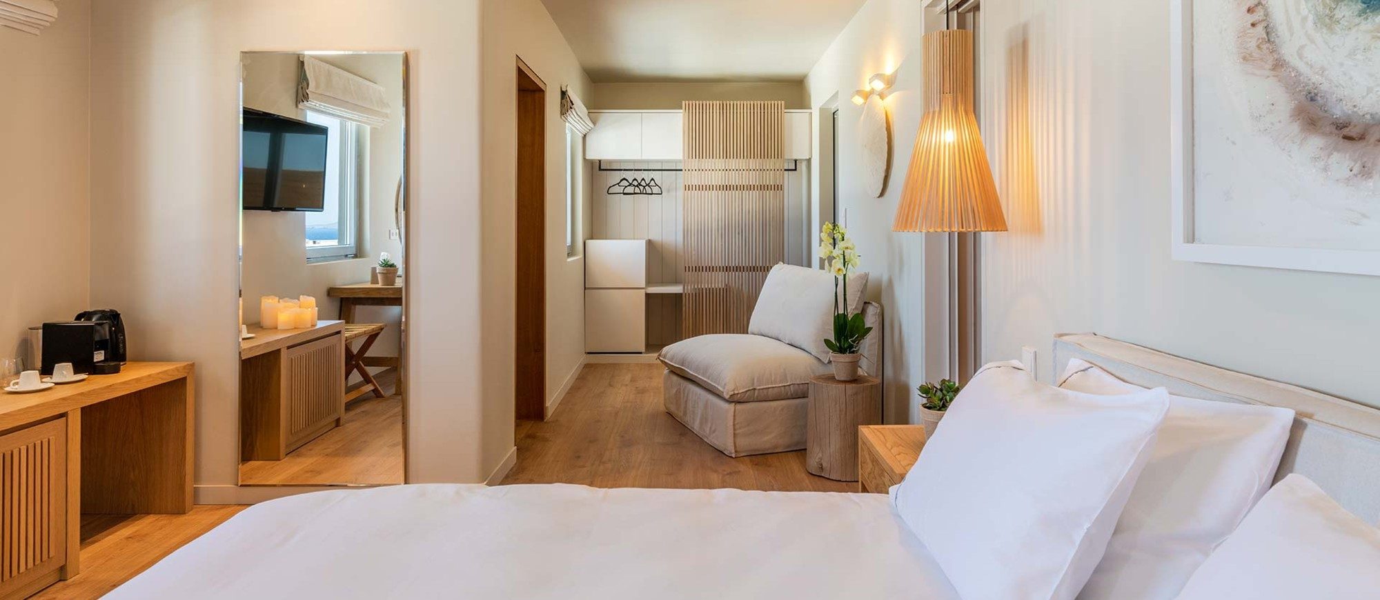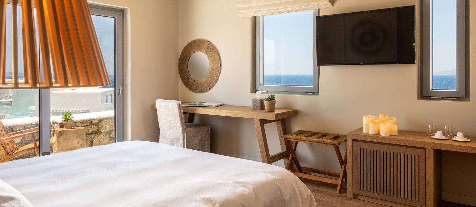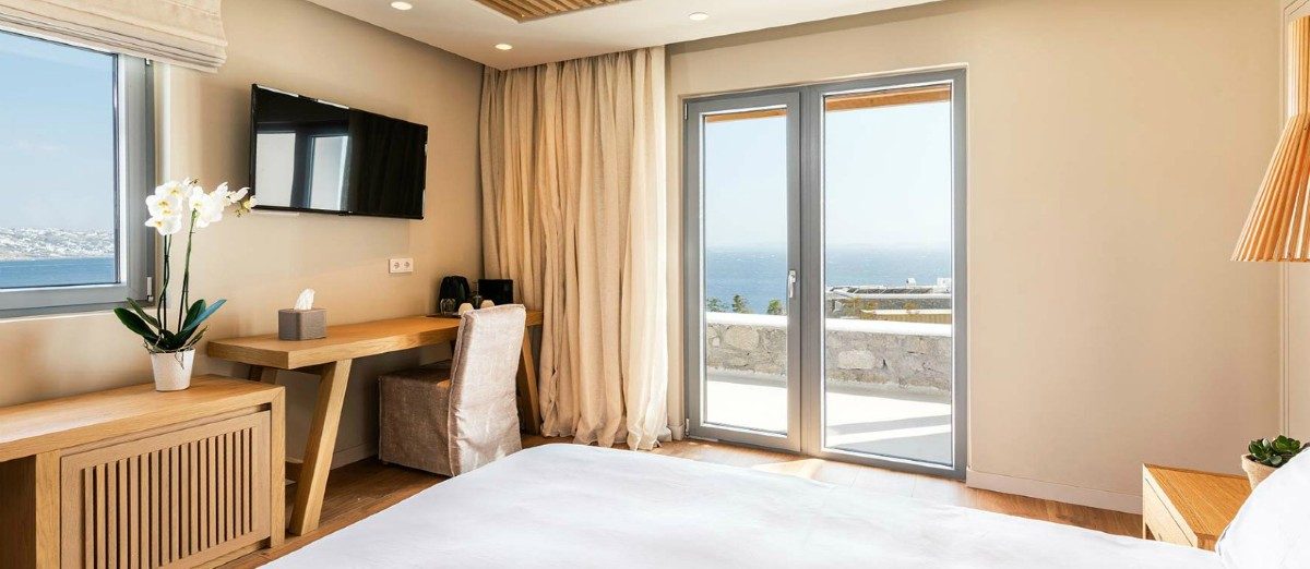 The brand new Destino Pacha Mykonos hotel will comprise 34 guestrooms, including six sea-view suites. Besides, the quality and luxury of the place are assured. The bedrooms will feature tiled floors and withe-washed walls, coupled with natural wood, stone, linen, and an abundance of glass to open up the views across the breath-taking Aegean Sea.”