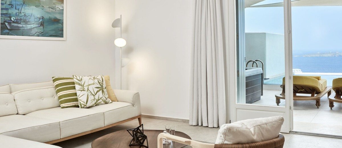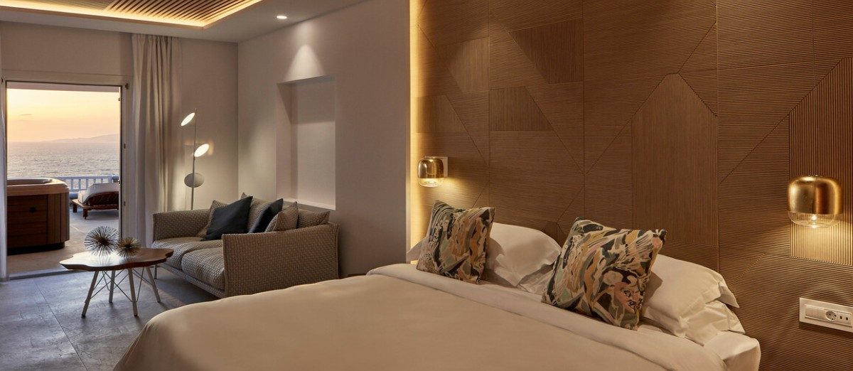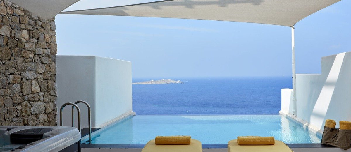 This privileged spot that claims the island’s most iconic views onto the old port of Alefkandra and 16th-century windmills on the edge of the city of Mykonos, also happens to be the site of the first hotel built by George Daktylides in 1979. Inherited and renovated by his youngest son, the Korali exudes the essence of boutique luxury that draws both on the spirit of its past as the family’s first guesthouse, and the celebrated service excellence of the Myconian Collection. Entirely sea-facing, the Korali is the perfect lookout from which to let the hours wash away and be dazzled by the spectacle of the deep blue Aegean Sea. The panoramic terrace invites to sunset drinks that lead into sumptuous dinners prepared with care by the chef from locally sourced produce and the day’s catch.