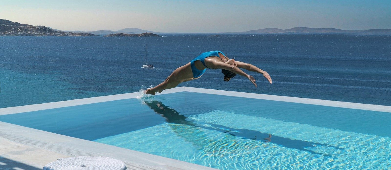 Mykonos Riviera Hotel & Spa offers a large selection of suites, most with heated pools, scintillating sunset views, and utmost privacy. A perfect embodiment of the island’s spirit, the Mykonos Riviera spacious 2 & 3 bedroom private pool maisonettes blend understated chic with signature Aegean views, maximum privacy and indulgence.