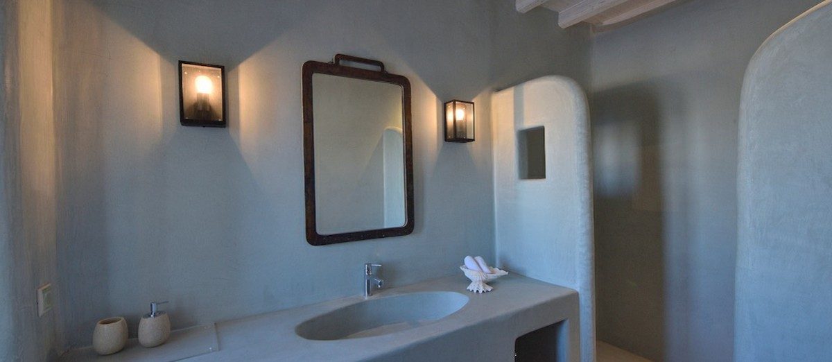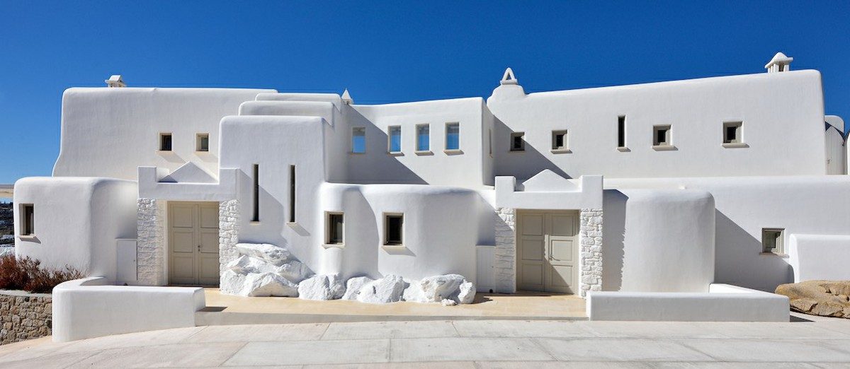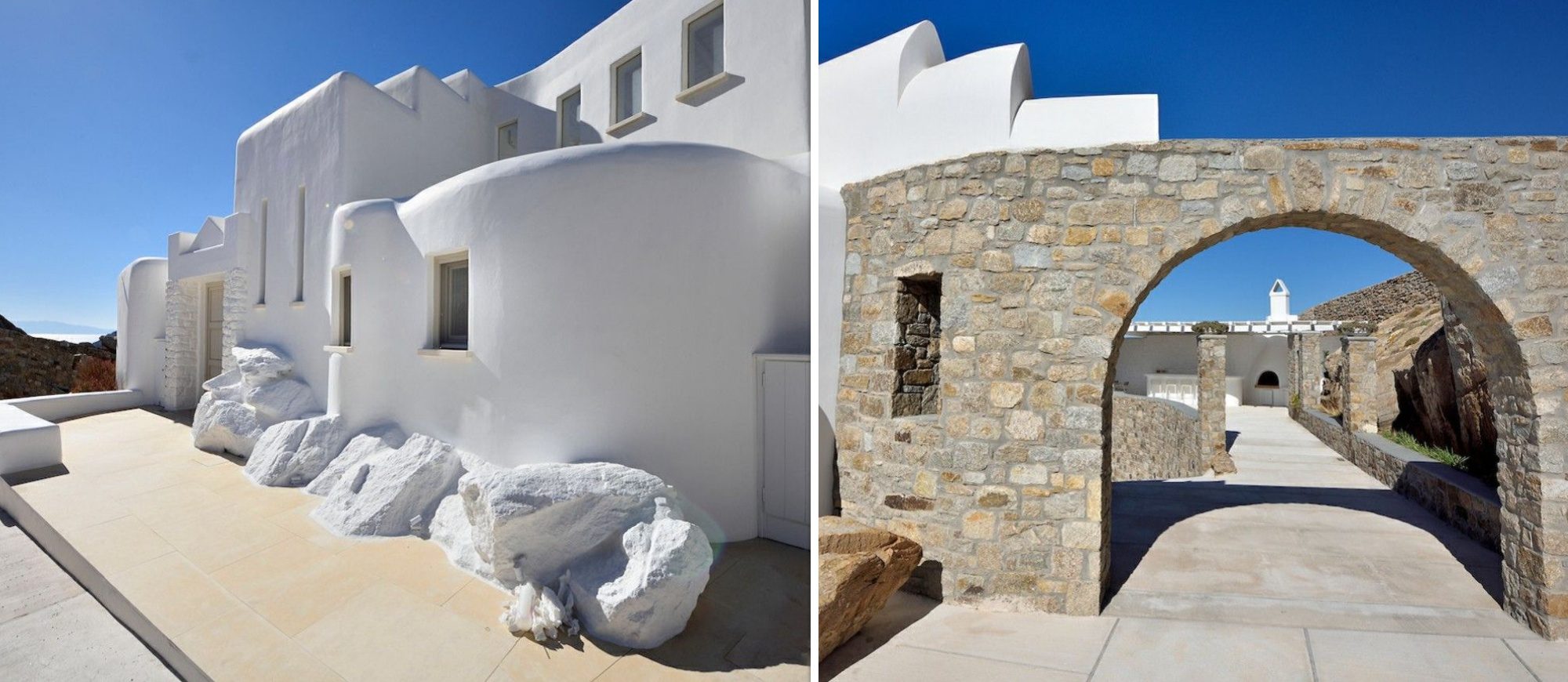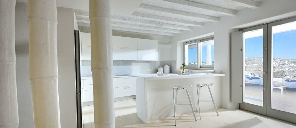 The sugar-cube, bright, whitewashed exteriors are a prime example of the world-famous Cycladic architecture and exude an aura of freshness. Outside, there are terraces, balconies, lounge areas, as the well as a pergola-shaded dining area and a BBQ.