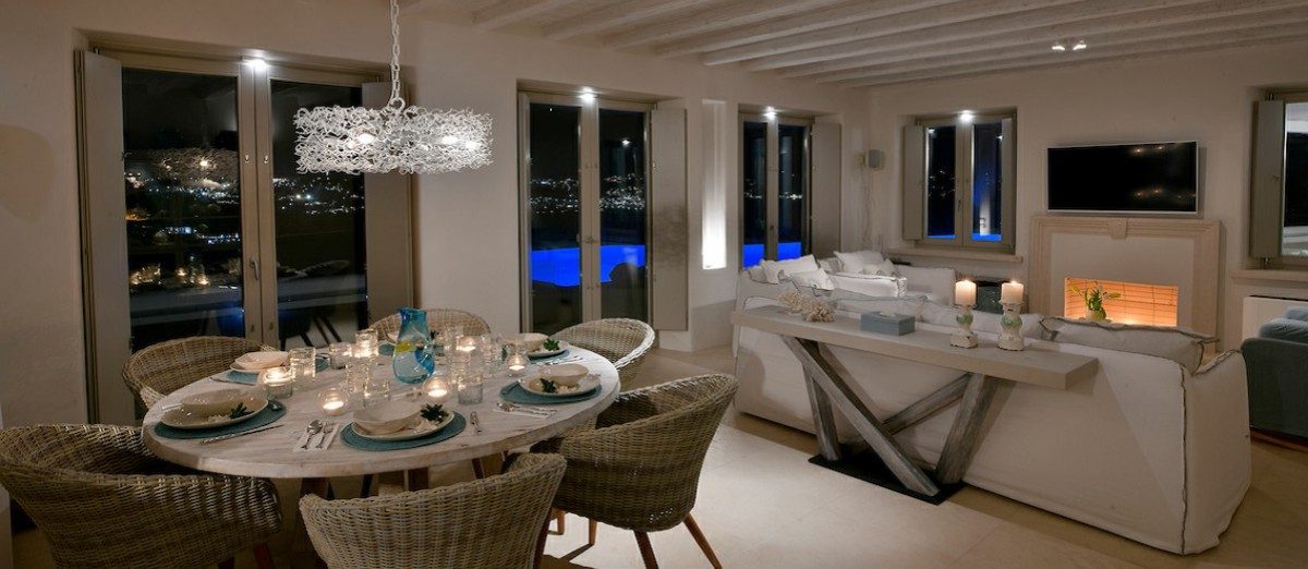 Aegean views, proximity to Mykonos Town, and the sandy beach of Korfos just 800m away makes this luxury villa your very own private Greek island sanctuary. Whether you cherish your peace and serenity or love to party until dawn, the villa’s location offers the best of both worlds. Mykonos Town and its legendary shops, restaurants and bars are 3.5 km away, while the scenic area of Ornos is just 900m from the property. Some of the island’s trendiest and most popular beaches are nearby, including the family-friendly beach of Ornos within 1.3 km.