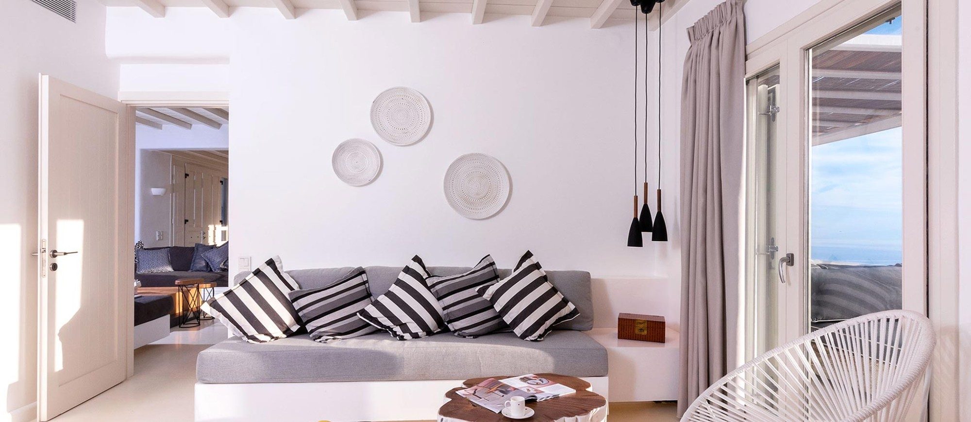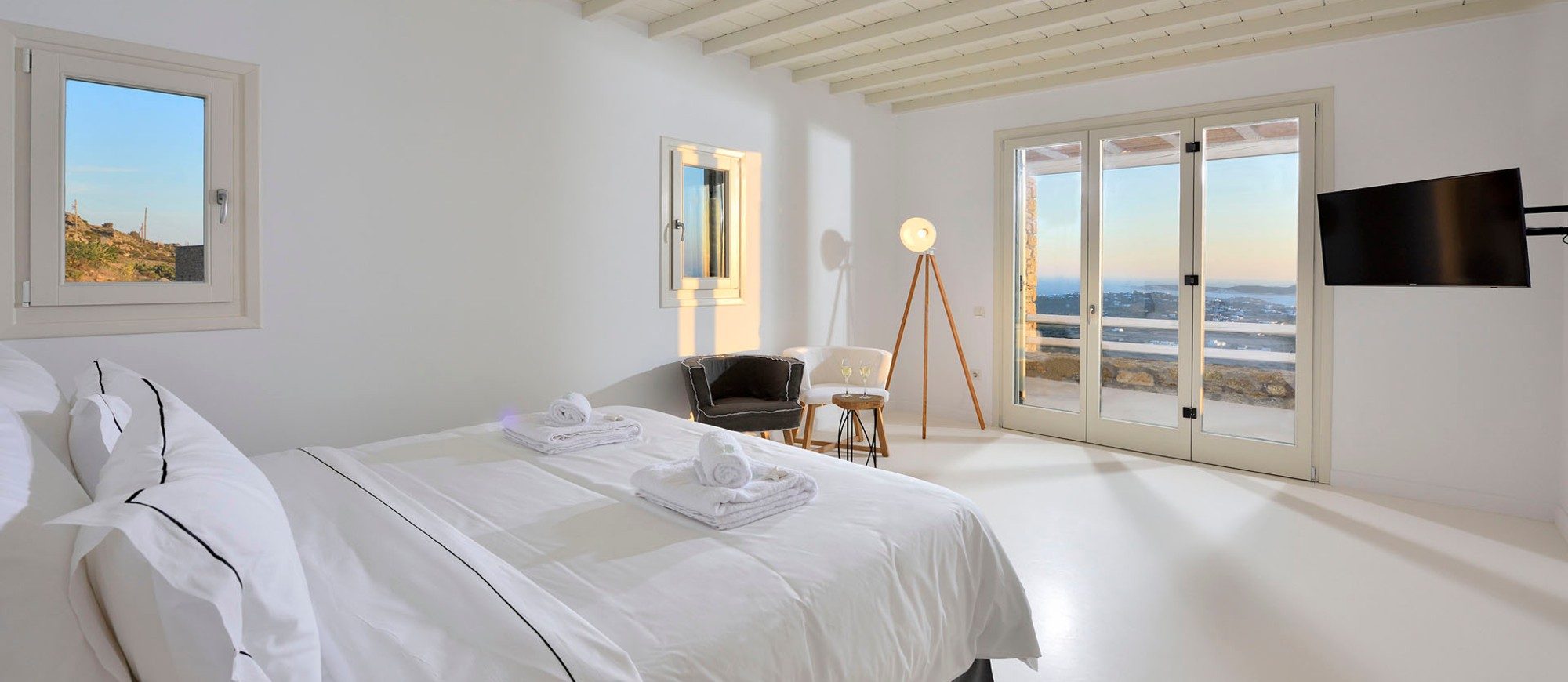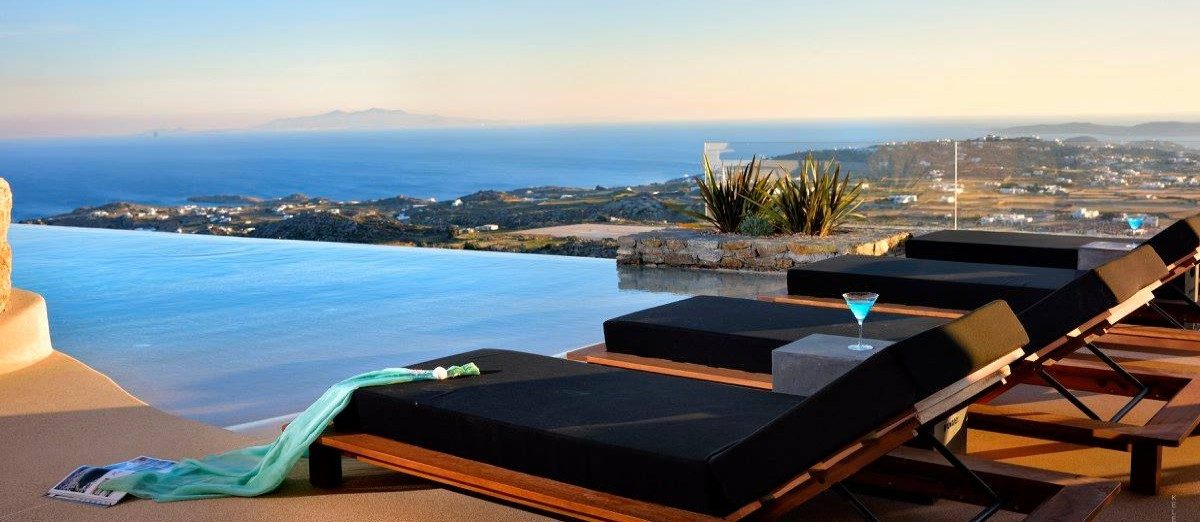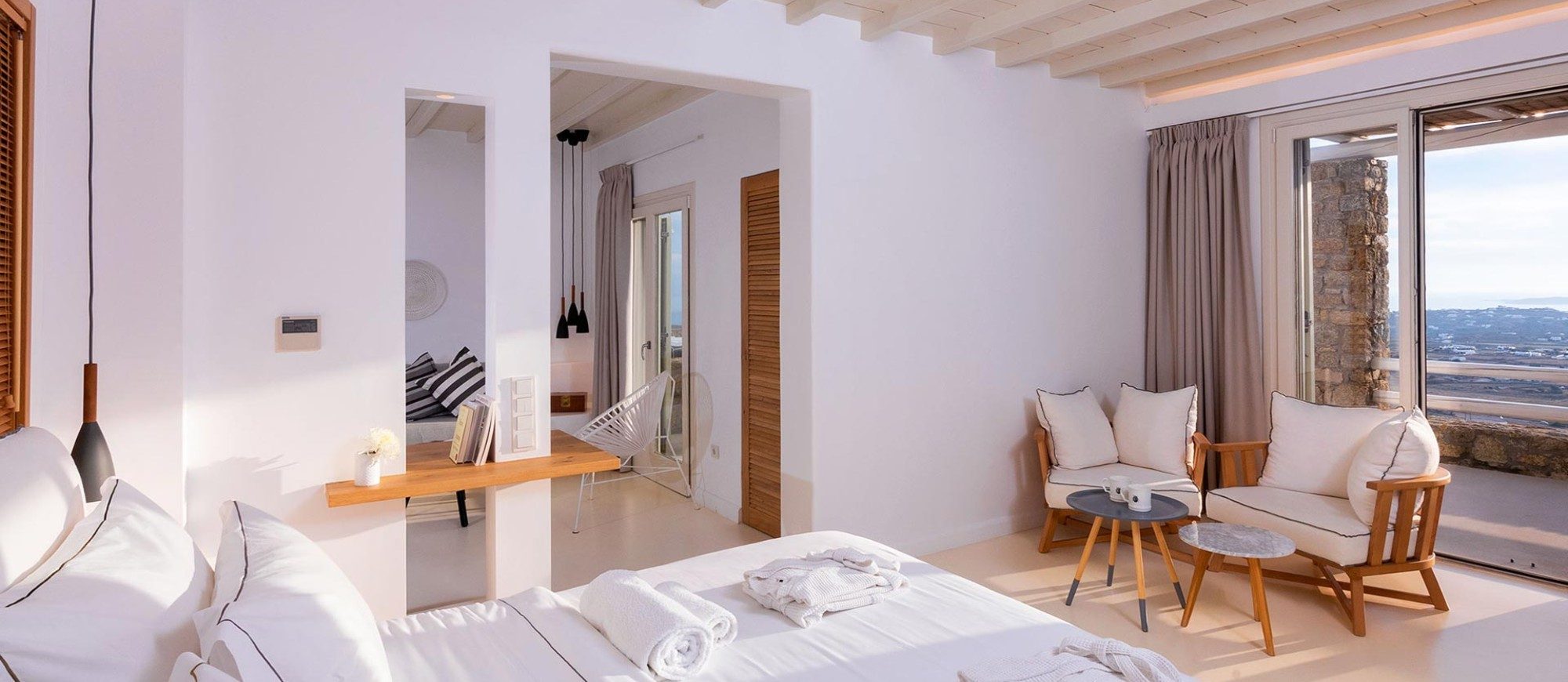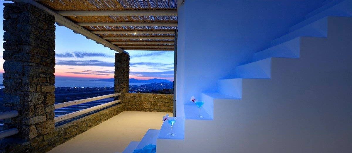 Breath-taking views from this hilltop position overlooking Mykonos Town
