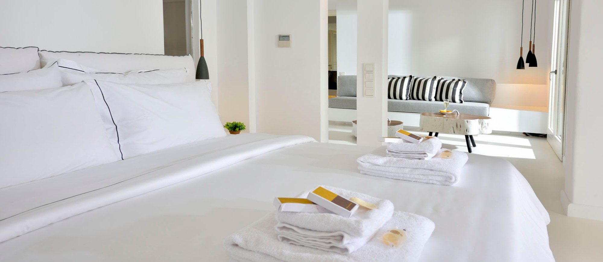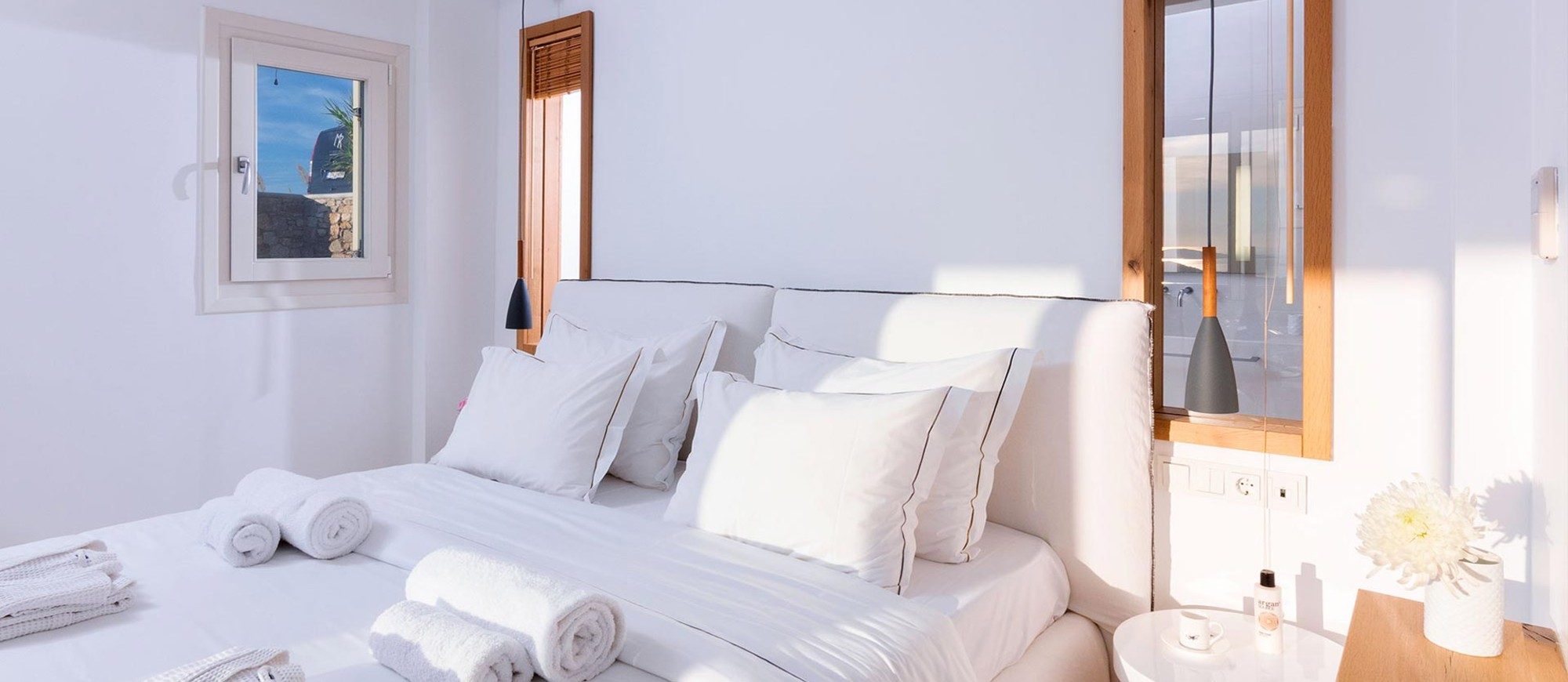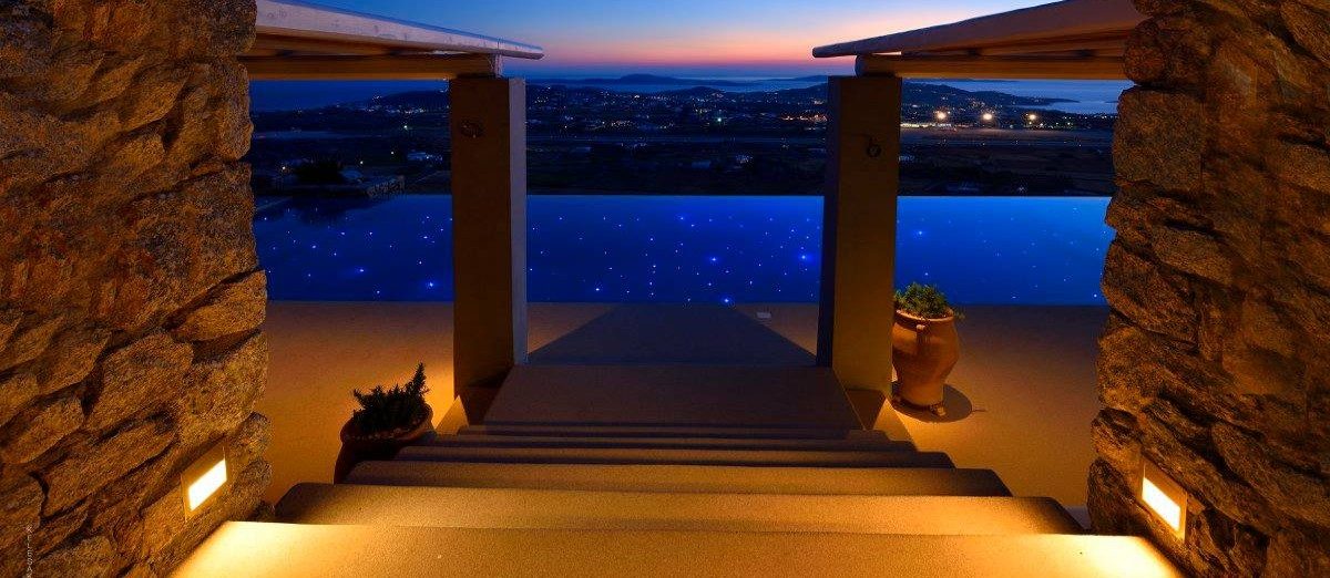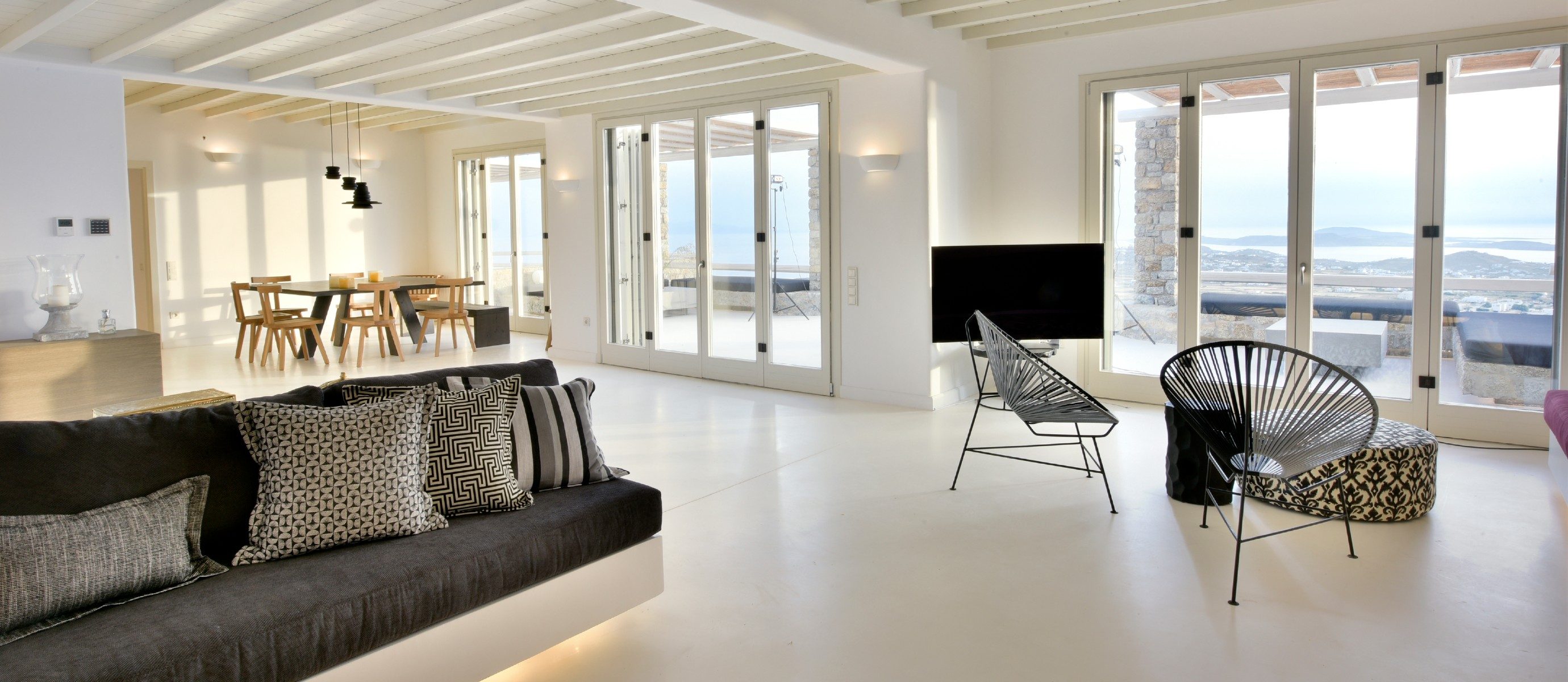 Breath-taking views from this hilltop position overlooking Mykonos Town