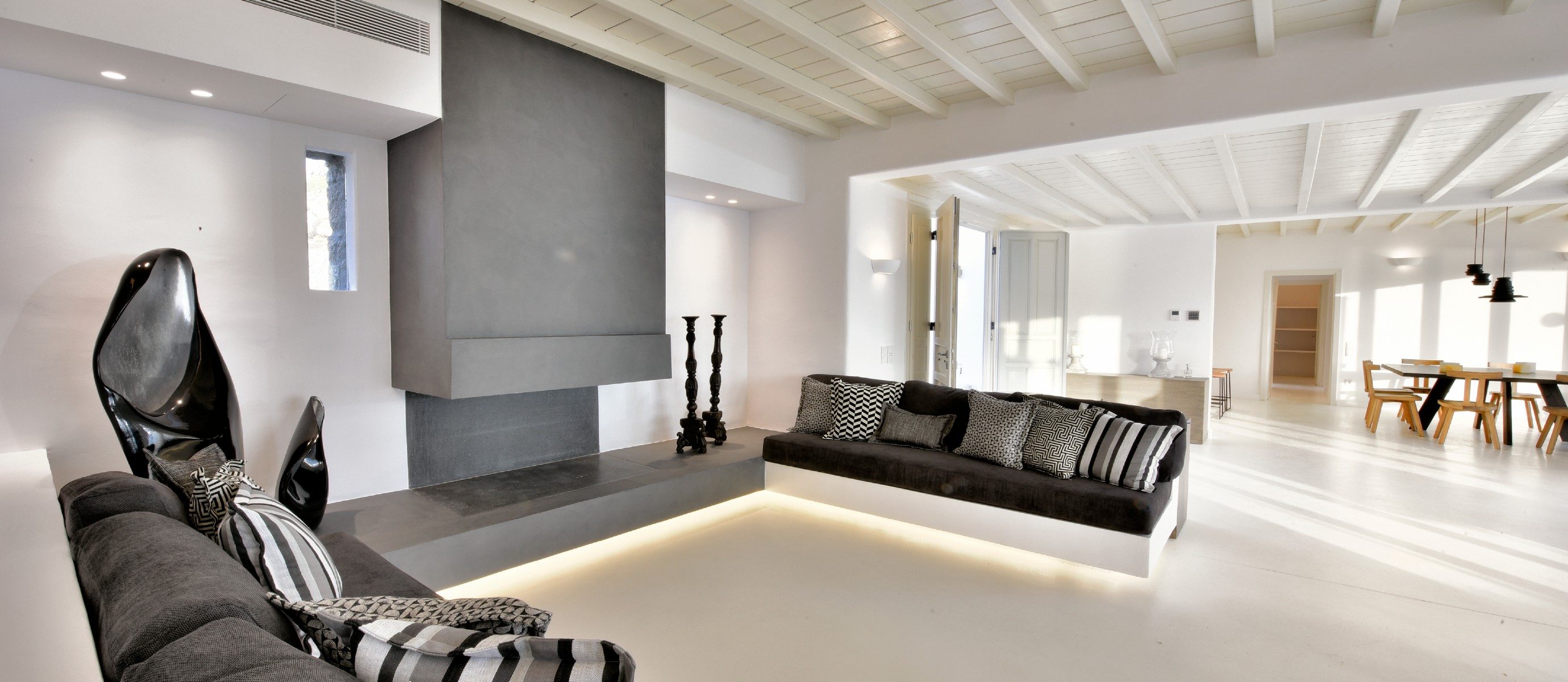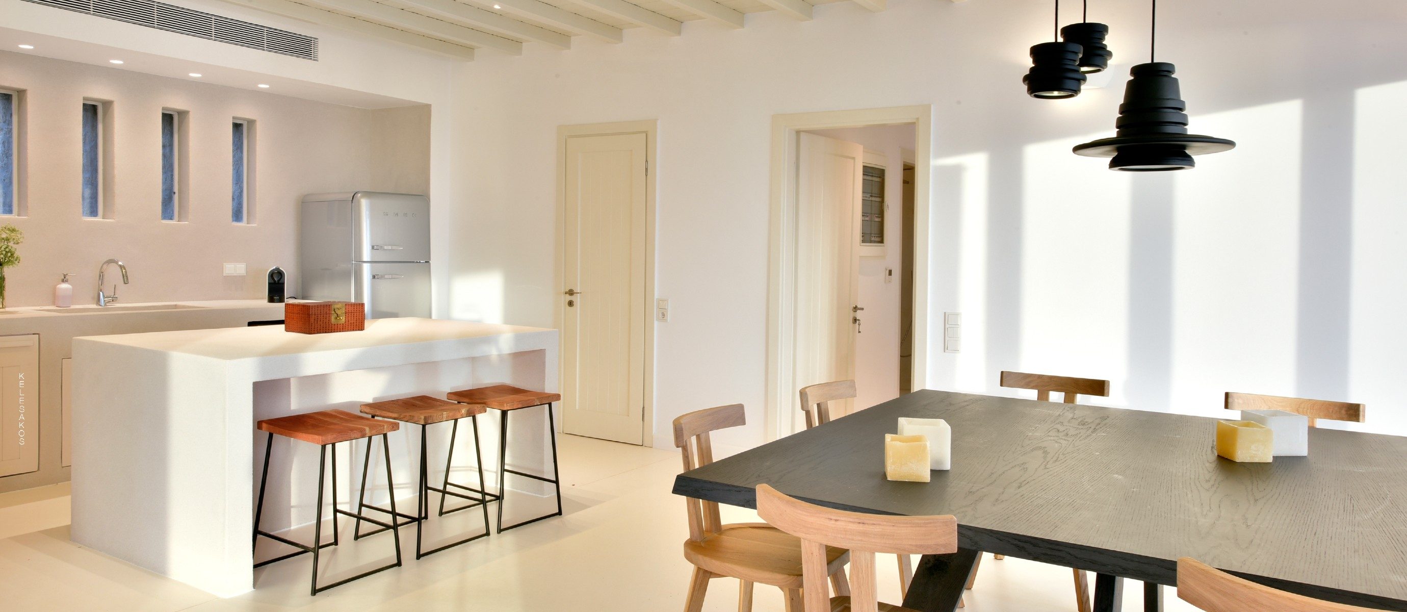 Part of an exclusive luxury complex, this brand new villa is designed in a stunning style which evokes high end modernity and traditional Greek minimalism. The interiors are airy and filled with light. Rustic elements and splashes of grey accentuate the peaceful purity of the white surfaces.