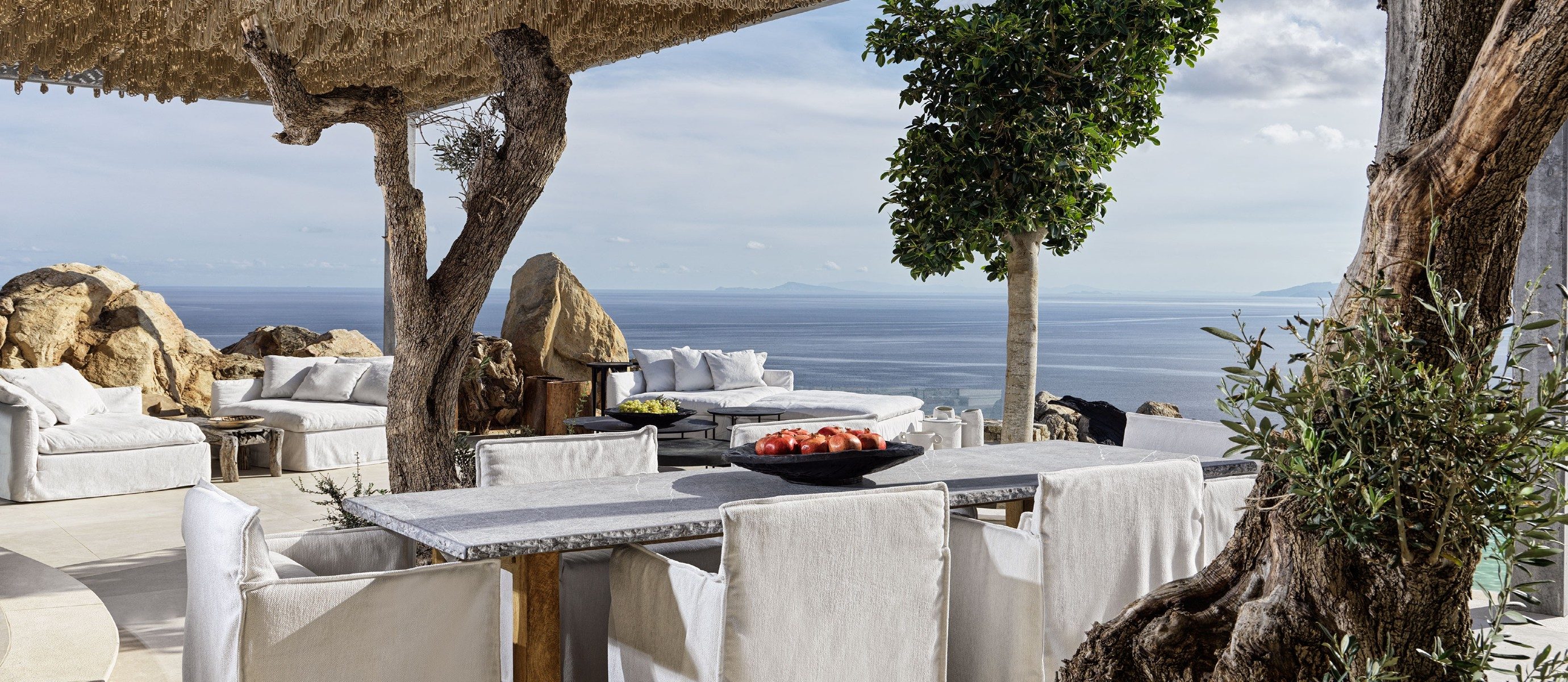 One of Jupiter’s names. Where the first part of its name translates as “where man meets his gods”, Panoptis Escape more than lives up to its ethereal philosophy of pure relaxation. This extraordinary ensemble of boutique villas overlooks the turquoise Aegean Sea and tranquil expanse of Elia Beach below.