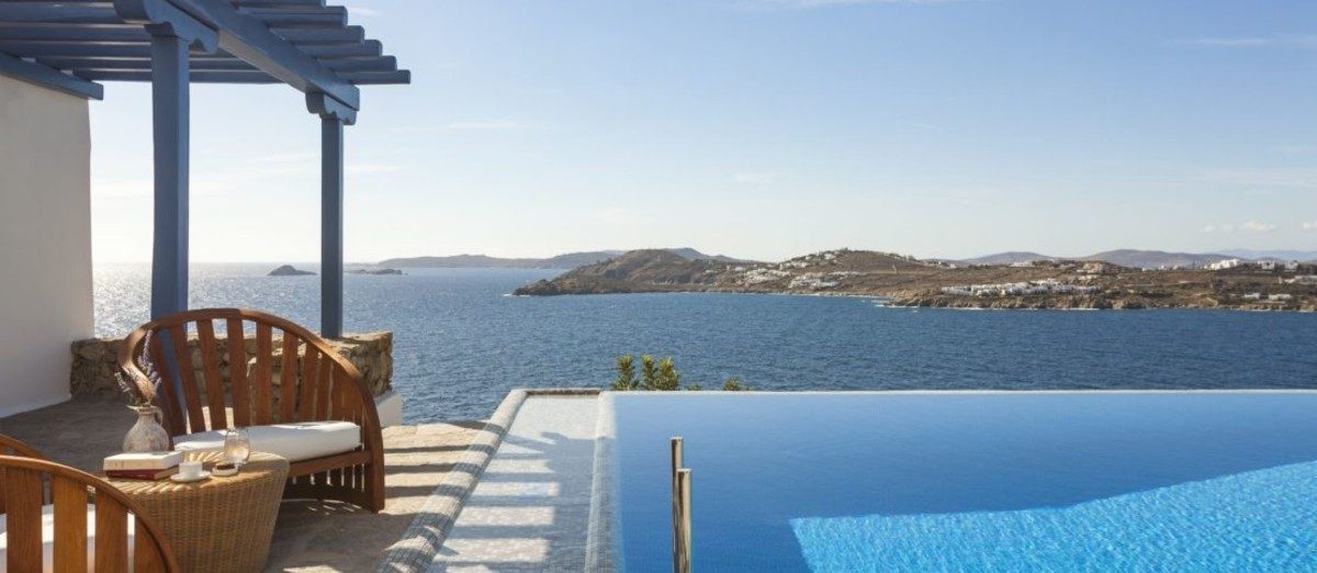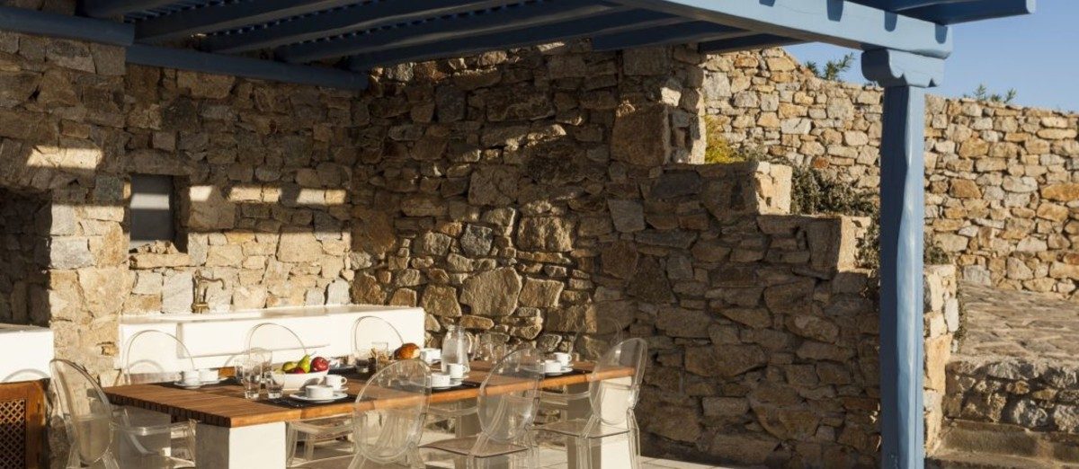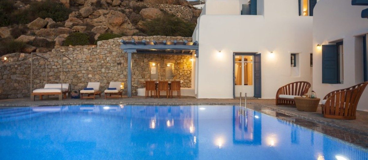 It is located a short distance from several beautiful beaches, Psarou, Platis Gialos and Ornos, and about 5 kms from Mykonos Town.