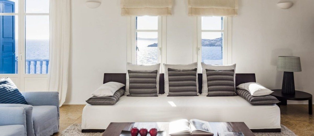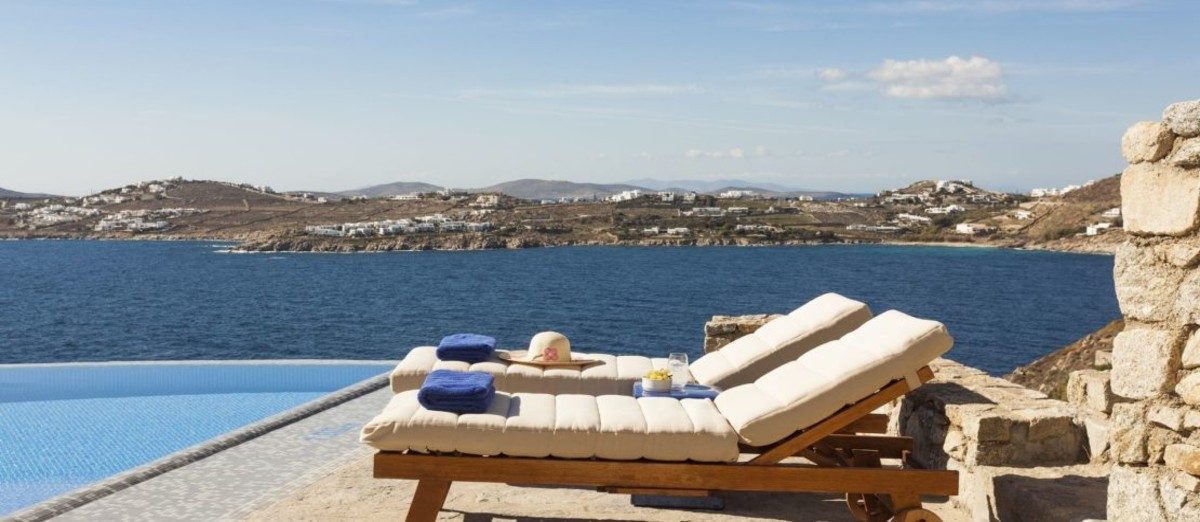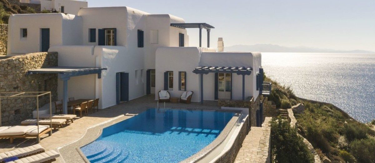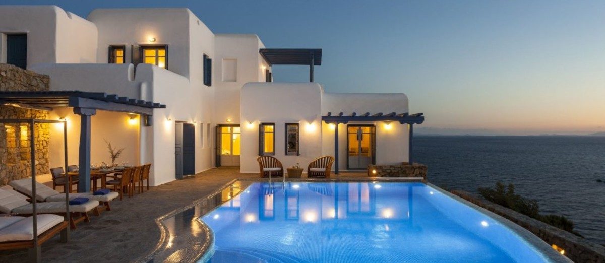 This is a stylish villa on the edge of the island in one of its most prominent areas. It is within the Agios Lazaros estate, with its twenty four hour security, and use of the helipad and dock.