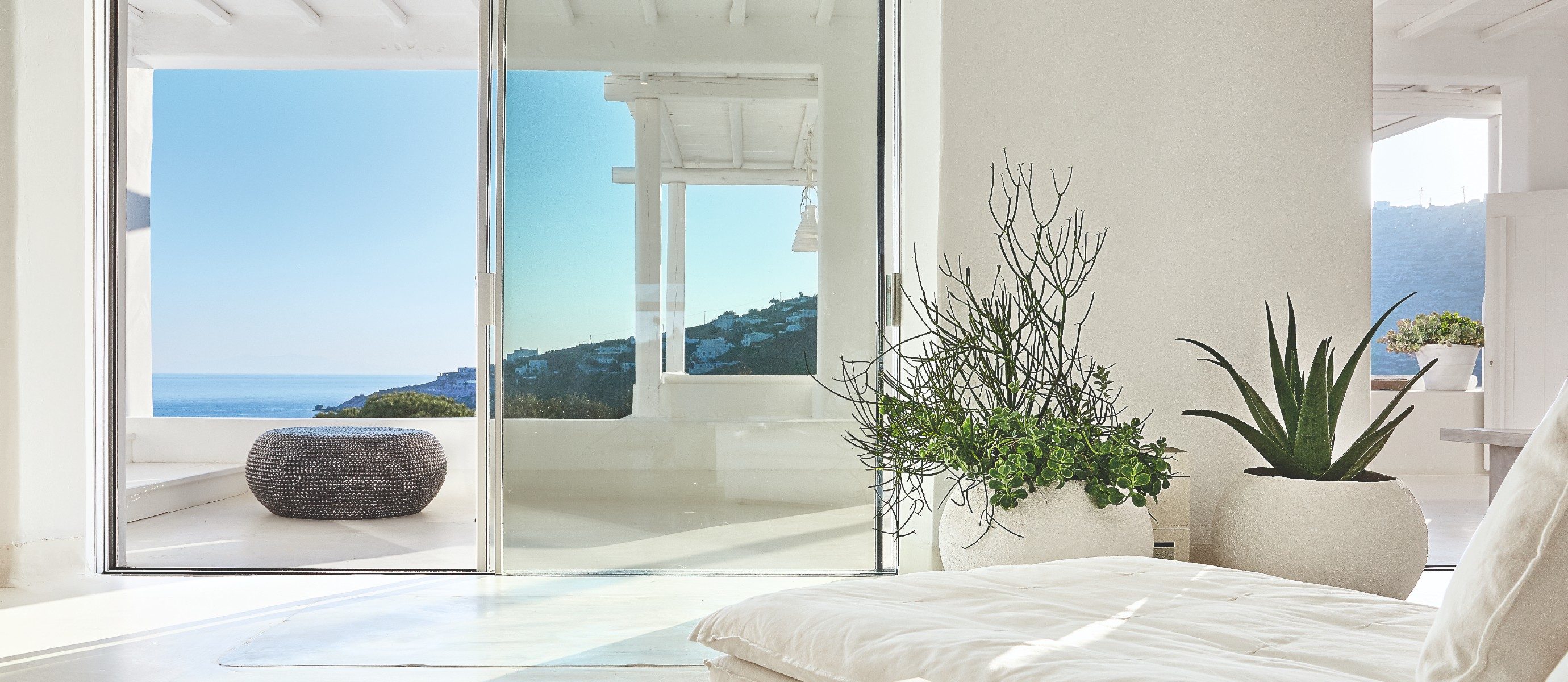 BEDS: Master Bedroom Suite with direct views from bed to sea, 3 Double king size beds & 2 extra single beds