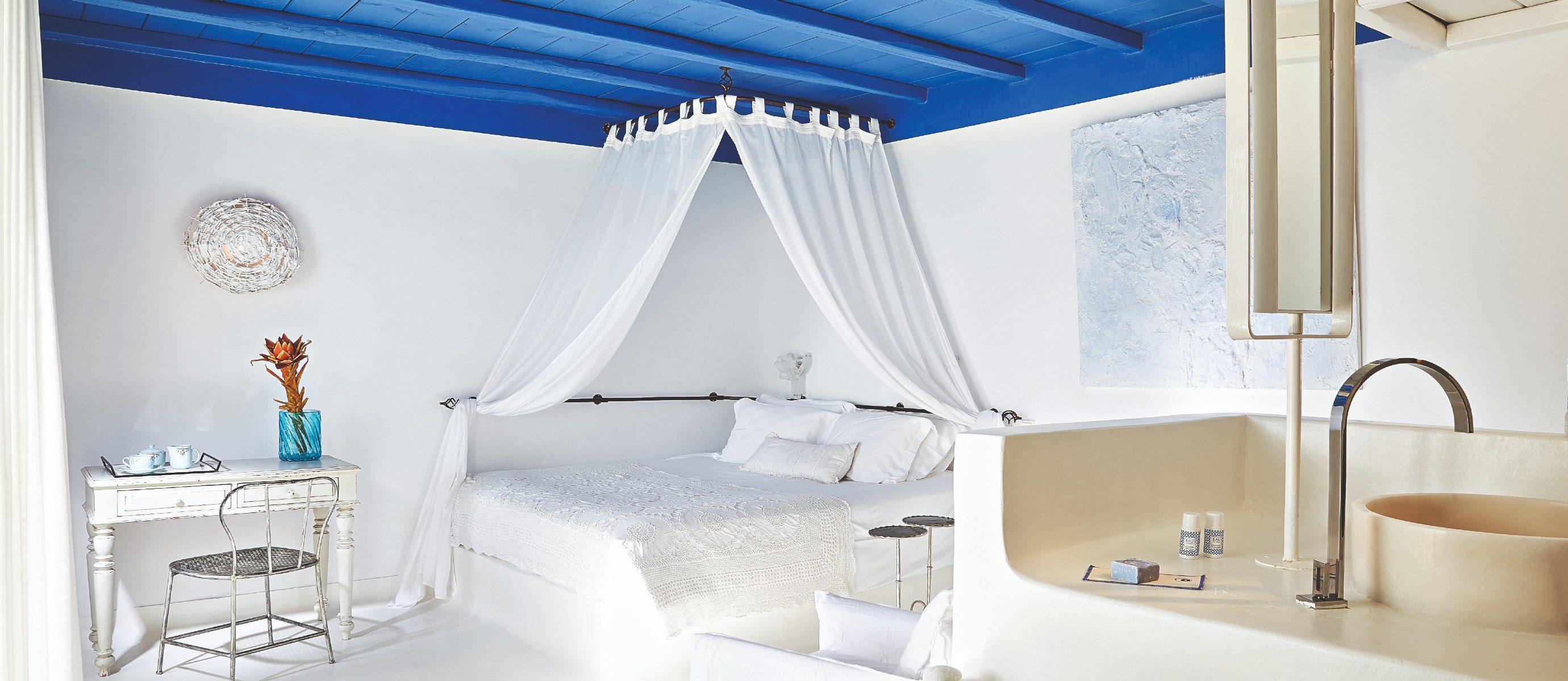• Psarou village: walking distance