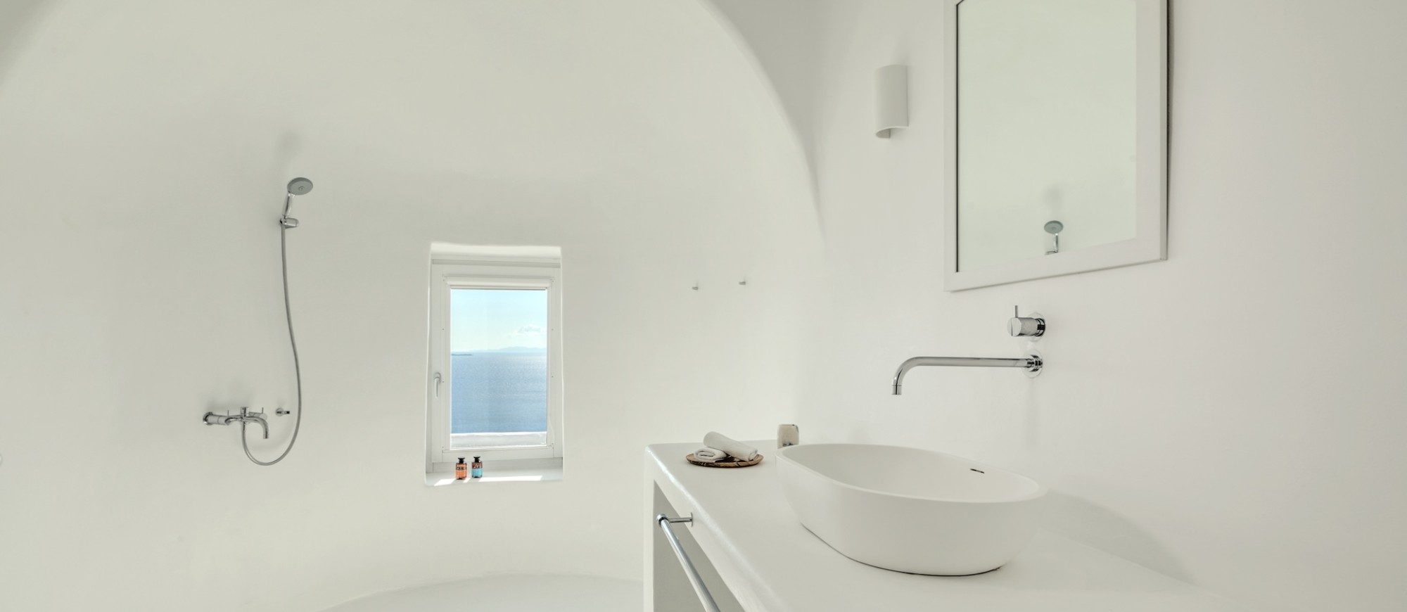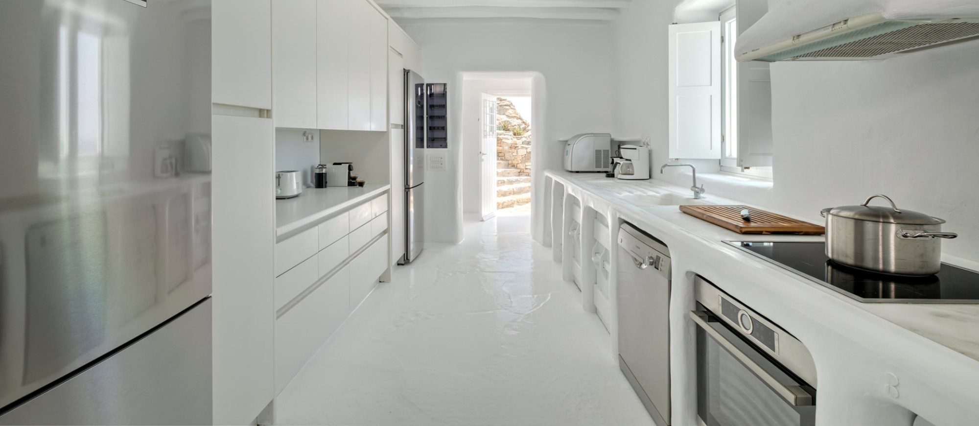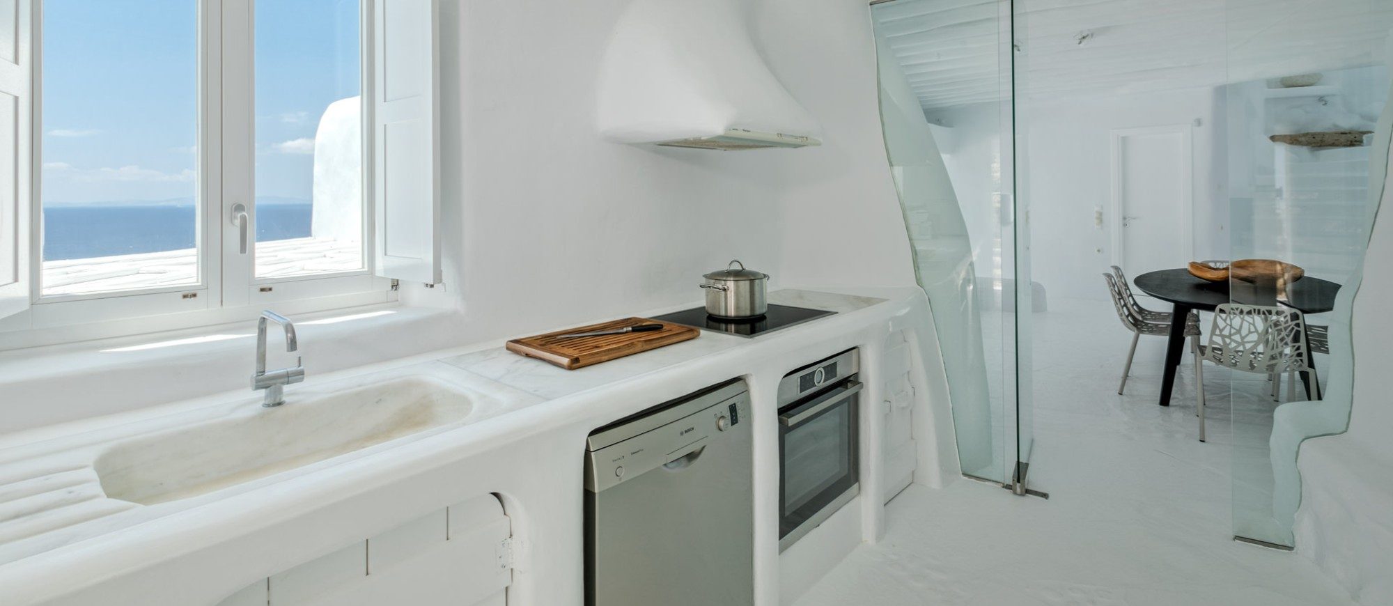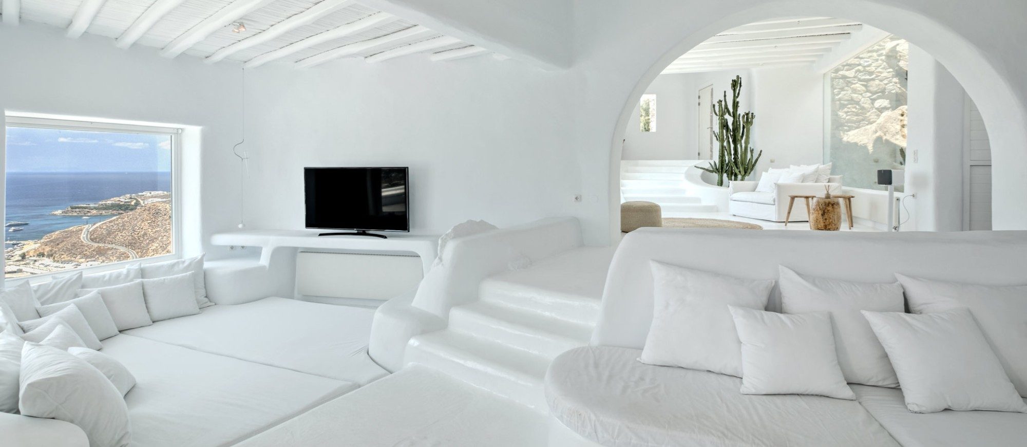 Sophisticated white villa in Agia Sophia overlooking the Aegean Sea
