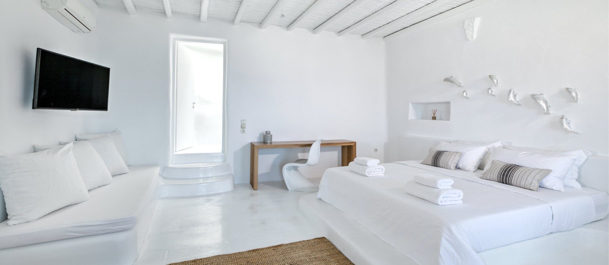 - Nearest beach (Agios Stefanos): 2.8 kms