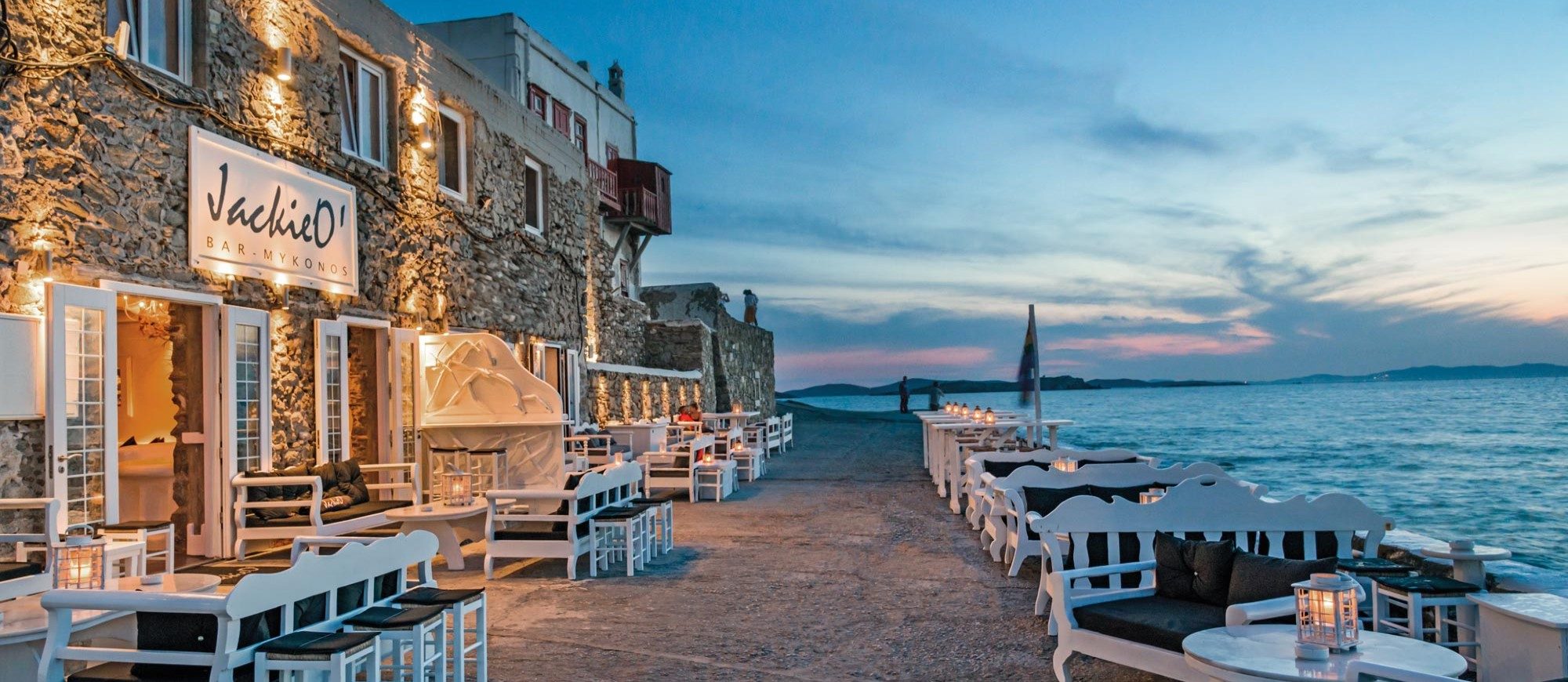 Located directly opposite the seawall of the old harbour of Mykonos, just below the famous church of Paraportiani, the elemental location of JackieO’ Mykonos Town Bar is the perfect setting for sunset cocktails, pre-dinner drinks or to dance the night away among the friendly bartenders and welcoming staff.