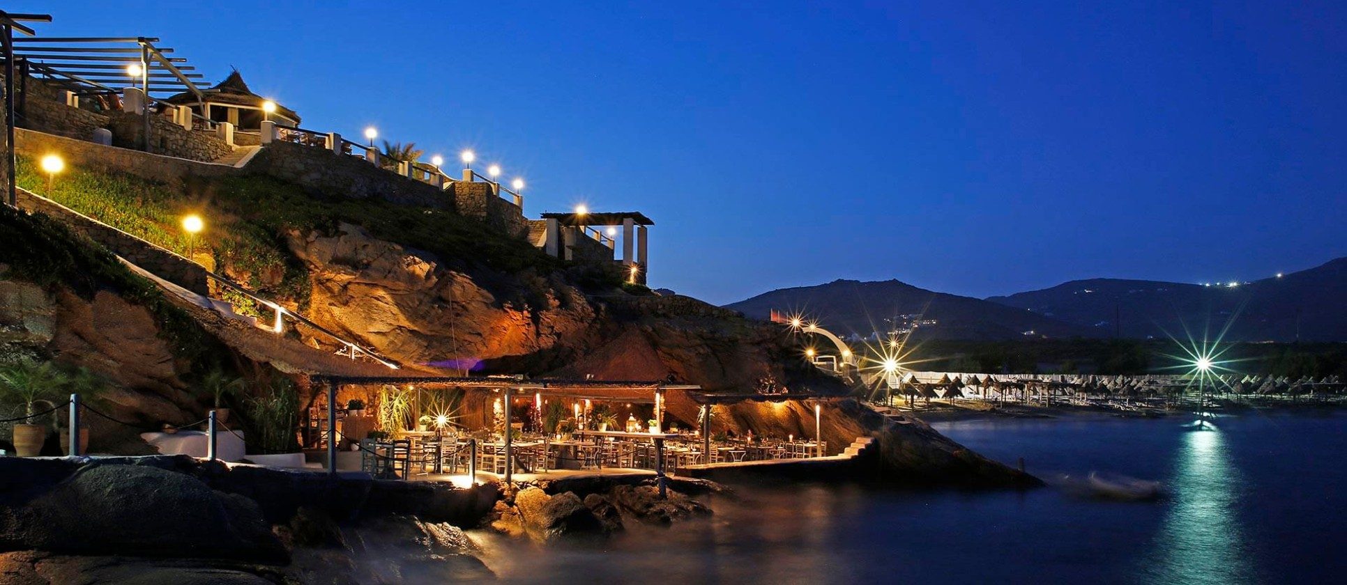 With a 30-year history and a recent makeover, this stunning all-day venue features dishes that offer up an authentic Mediterranean-Mykonian culinary experience. Seafood and fresh fish are served straight from the Aegean – oysters, mussels, urchins, crayfish and lobsters await your order in a small natural sea pool, to be prepared before your eyes.