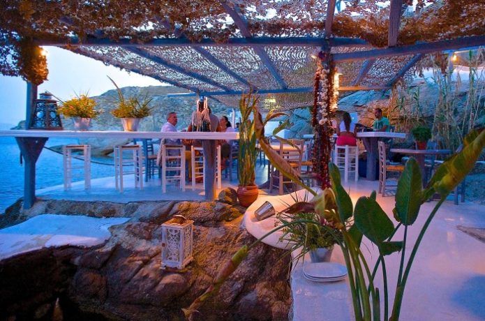 In the beautiful cove of Agia Anna, next to Kalafatis beach, you’ll find a restaurant-bar like no other. Peacefully nestled on a natural platform on the rocks, hanging over the sea, Spilia (cave) Seaside restaurant is one of the most iconic Mykonos hotspots.