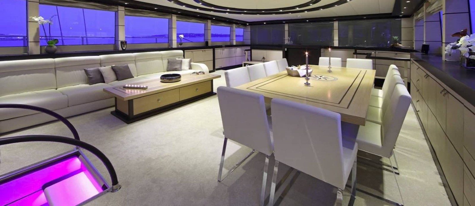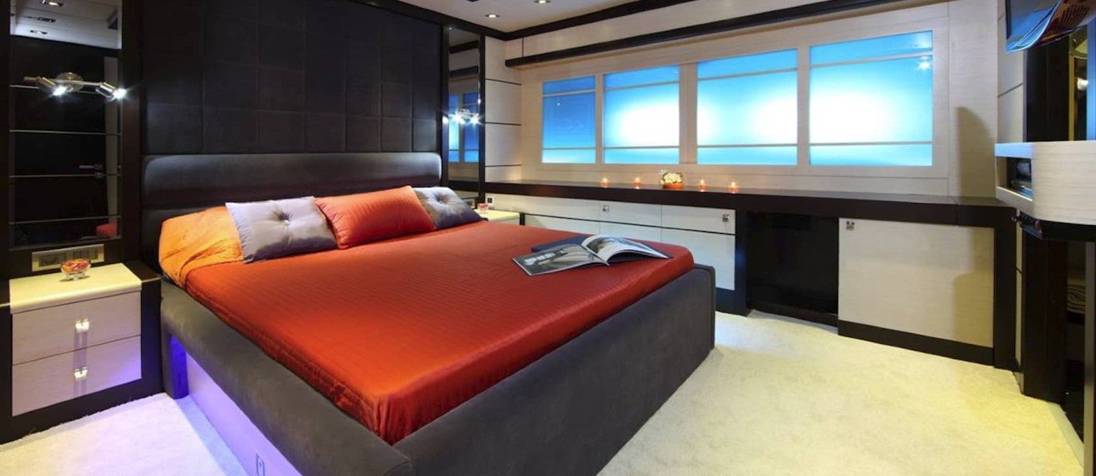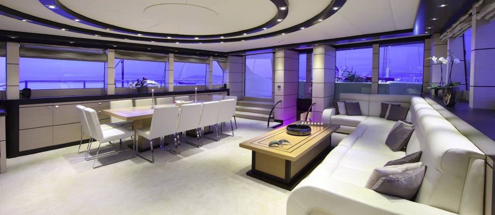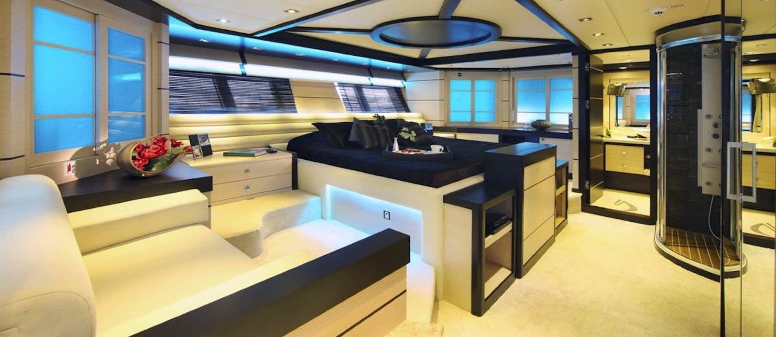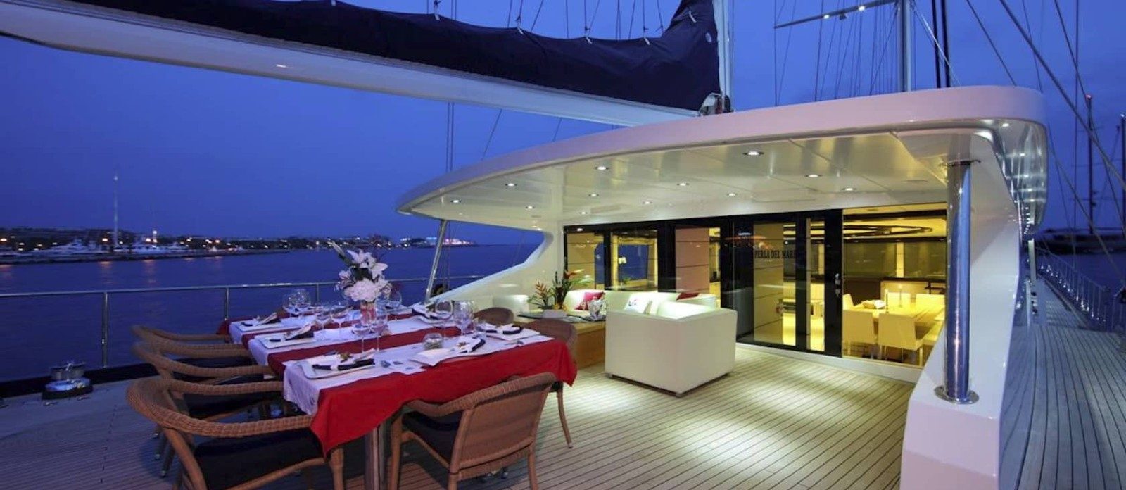 Perla del Mare’s interior layout sleeps up to 12 guests in 6 rooms, including a master suite, 1 VIP stateroom, 2 double cabins and 2 twin cabins. She is also capable of carrying up to 7 crew onboard to ensure a relaxed luxury yacht experience. Timeless styling, beautiful furnishings and sumptuous seating feature throughout to create an elegant and comfortable atmosphere.