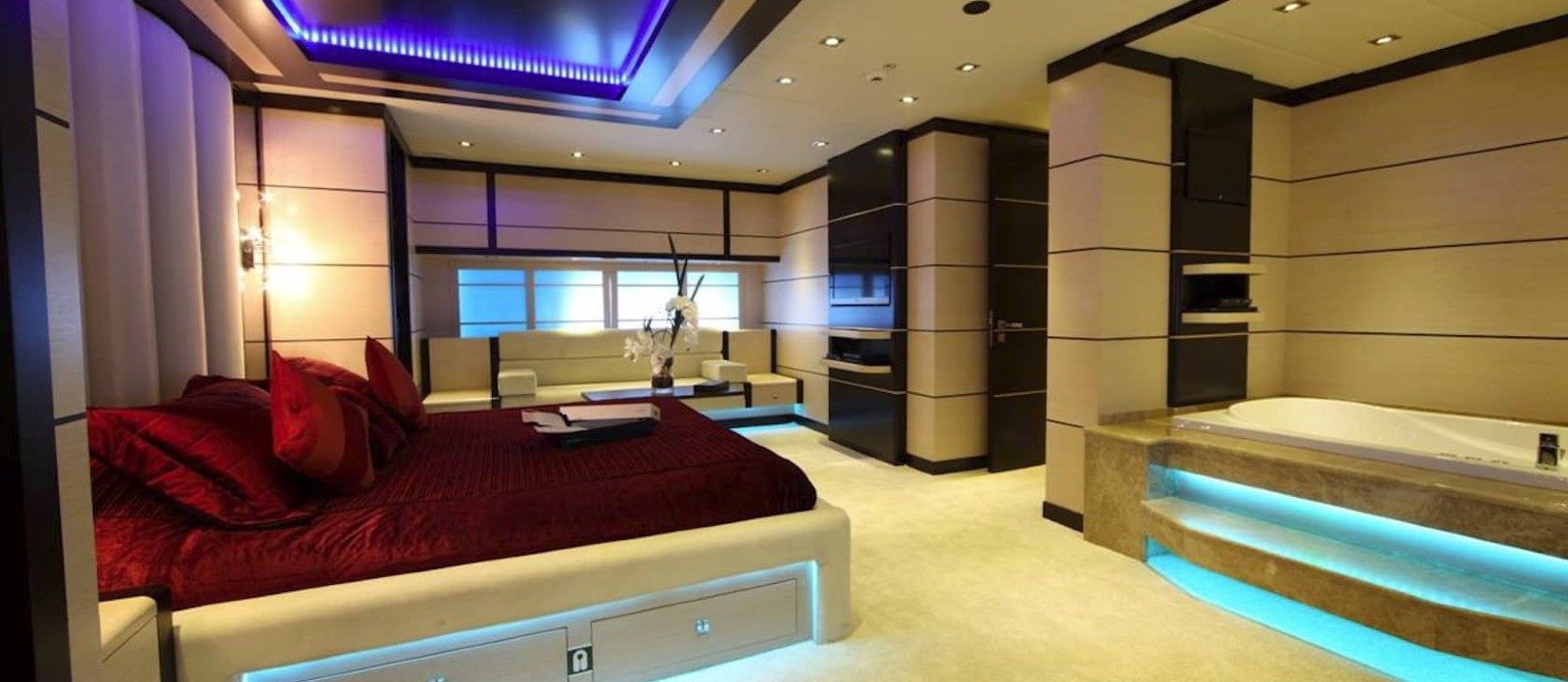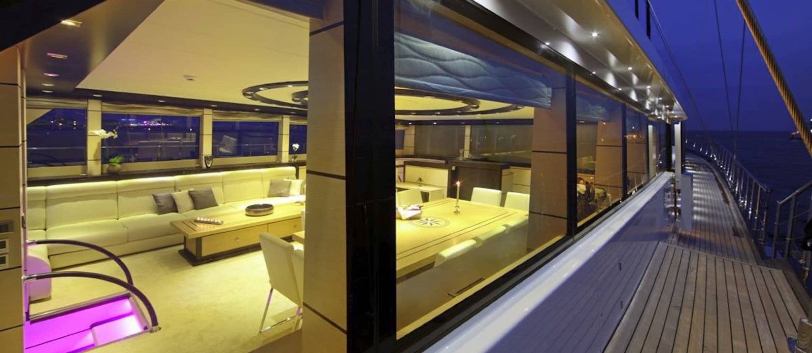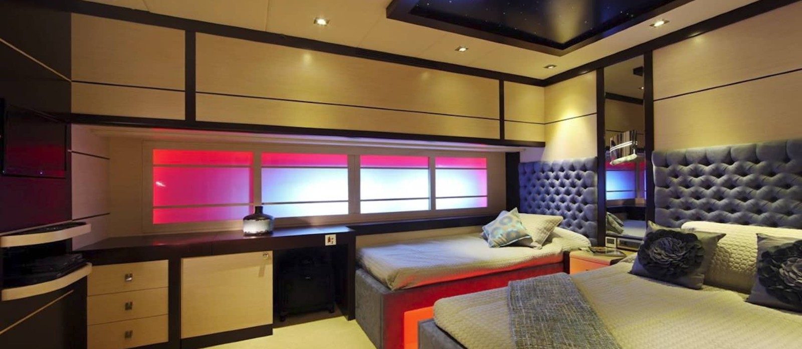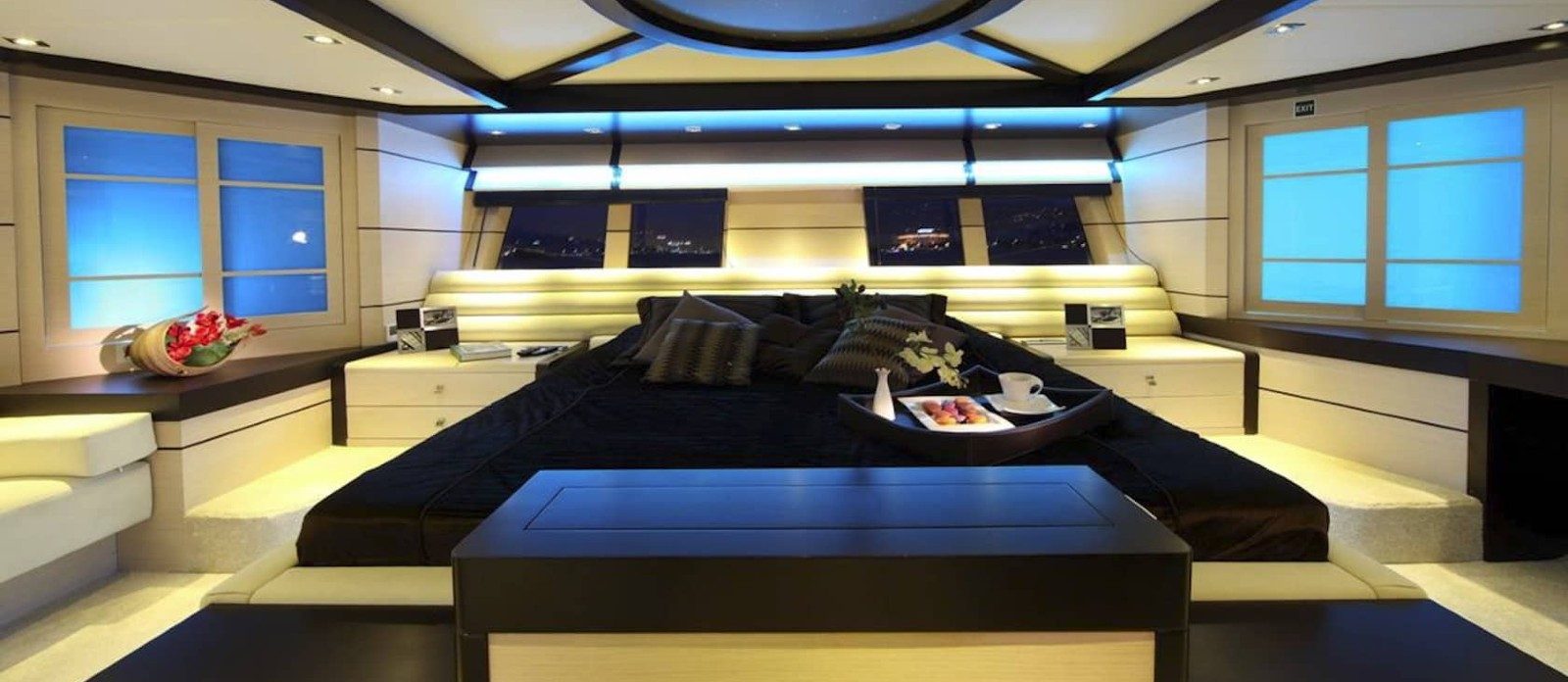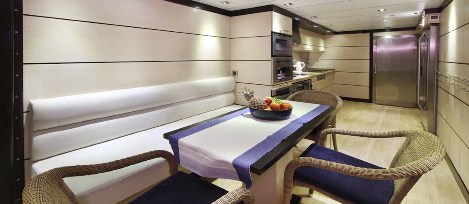 Perla del Mare’s interior layout sleeps up to 12 guests in 6 rooms, including a master suite, 1 VIP stateroom, 2 double cabins and 2 twin cabins. She is also capable of carrying up to 7 crew onboard to ensure a relaxed luxury yacht experience. Timeless styling, beautiful furnishings and sumptuous seating feature throughout to create an elegant and comfortable atmosphere.